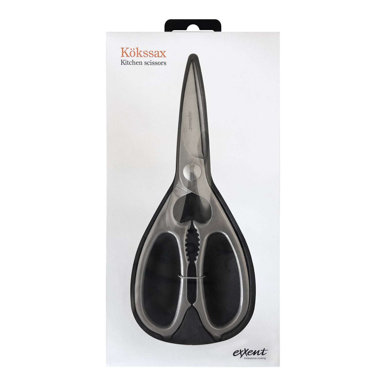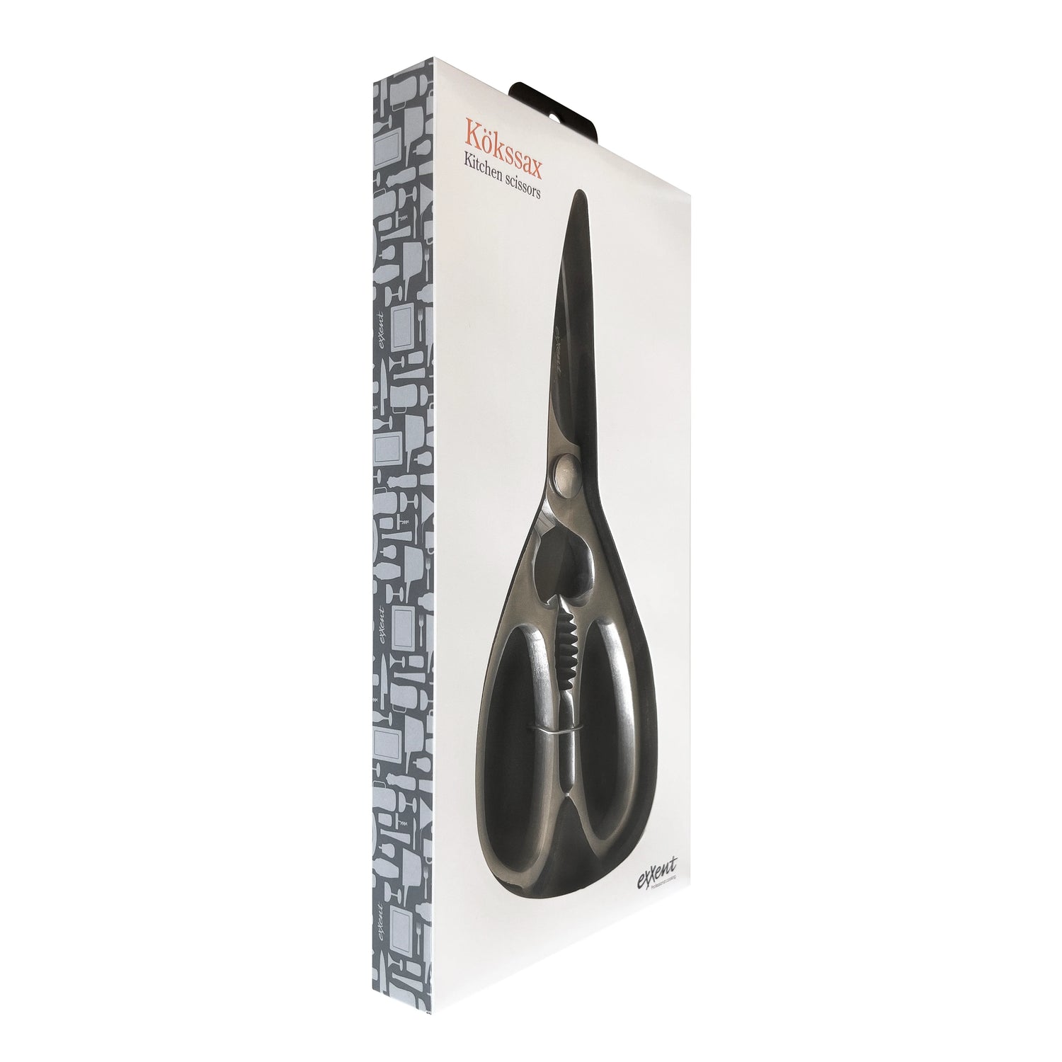 En kraftfull och slitstark kökssax framtagen för det professionella köket. Saxen klipper enkelt igenom kött, fisk, fågel och andra råvaror med precision. Handtaget är utrustat med en taggad båge som är idealisk för att knäcka skaldjur och nötter – en smart funktion som gör saxen till ett oumbärligt redskap i köket.