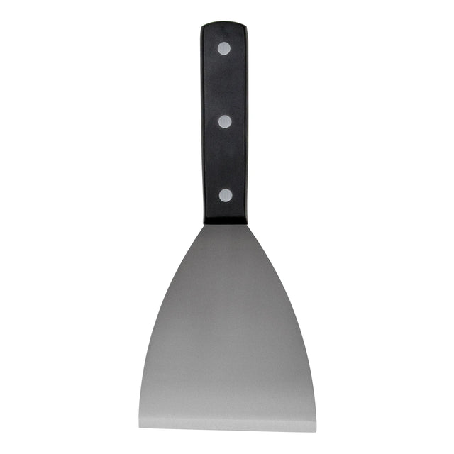 Kraftig stekbordsskrapa tillverkad i rostfritt stål med ett ergonomiskt handtag i POM – ett hårt, slitstarkt och beständigt material som tål daglig användning. Handtaget är fäst med rostfria stålnitar för extra hållbarhet. Skrapan är framtagen för att effektivisera rengöringen av stekbord och grillplattor i det professionella köket.