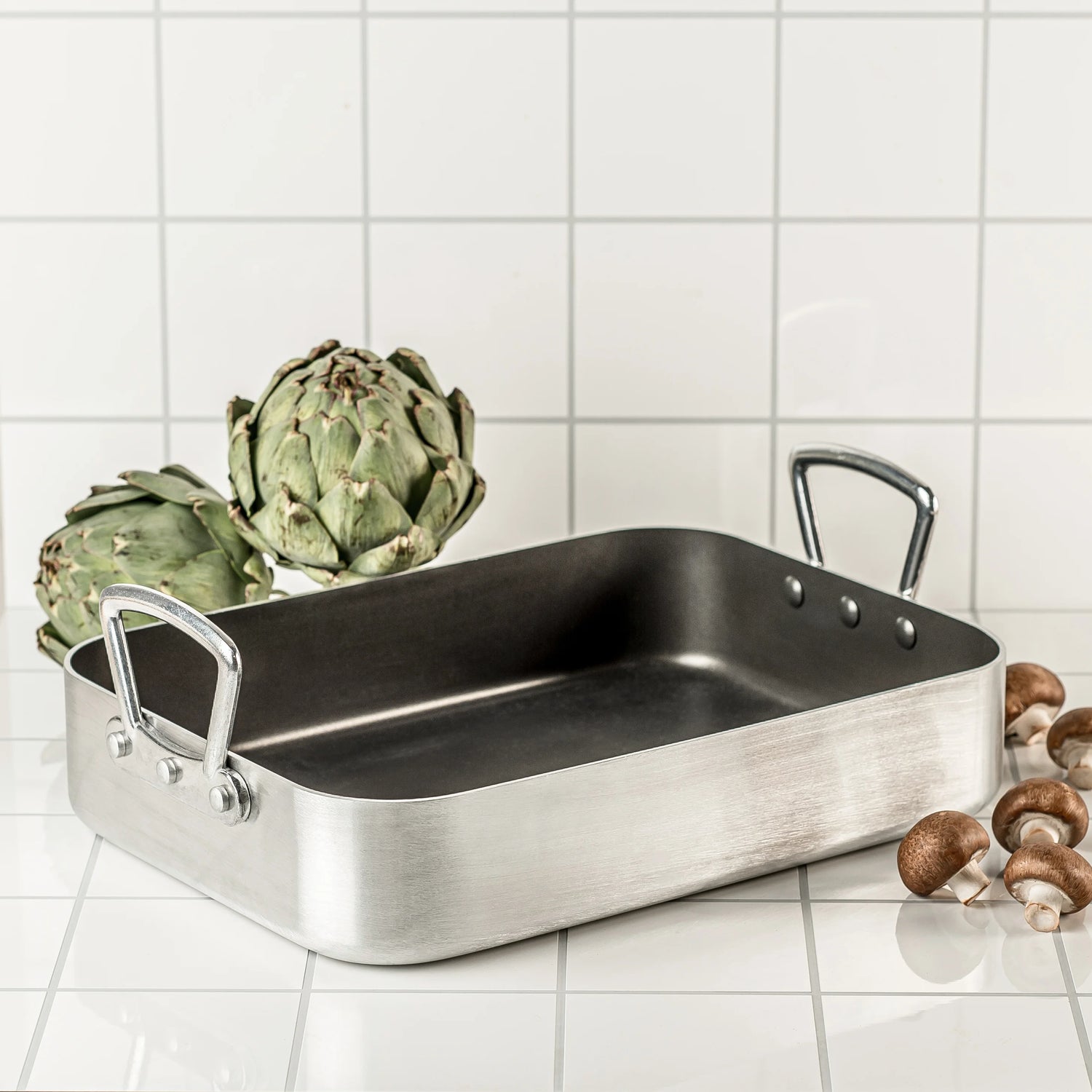 Robust ugnsform i aluminium med nonstick-beläggning och praktiska handtag som gör det enkelt att lyfta och förflytta formen, även när den är varm. Den tåliga konstruktionen är särskilt lämpad för tillagning av kött- och fågelrätter och klarar av den intensiva användning som krävs i ett professionellt kök. En mångsidig form som kombinerar funktion, hållbarhet och enkel rengöring.