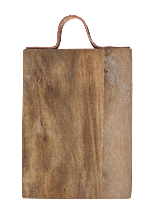 Denna dekorativa serveringsbricka är tillverkad av FSC-märkt akaciaträ, vilket ger en naturligt vacker och rustik känsla. Med ett stilrent och hållbart läderhandtag är brickan både praktisk och bekväm att bära.