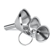 Praktiskt trattset i 3 delar tillverkat i rostfritt 18/8-stål, utformat för att klara daglig användning i restaurang, bar eller storkök. De olika storlekarna gör setet mångsidigt och användbart för allt från påfyllning av flaskor till överföring av vätskor och torra ingredienser. Ett oumbärligt redskap i ett välutrustat kök.